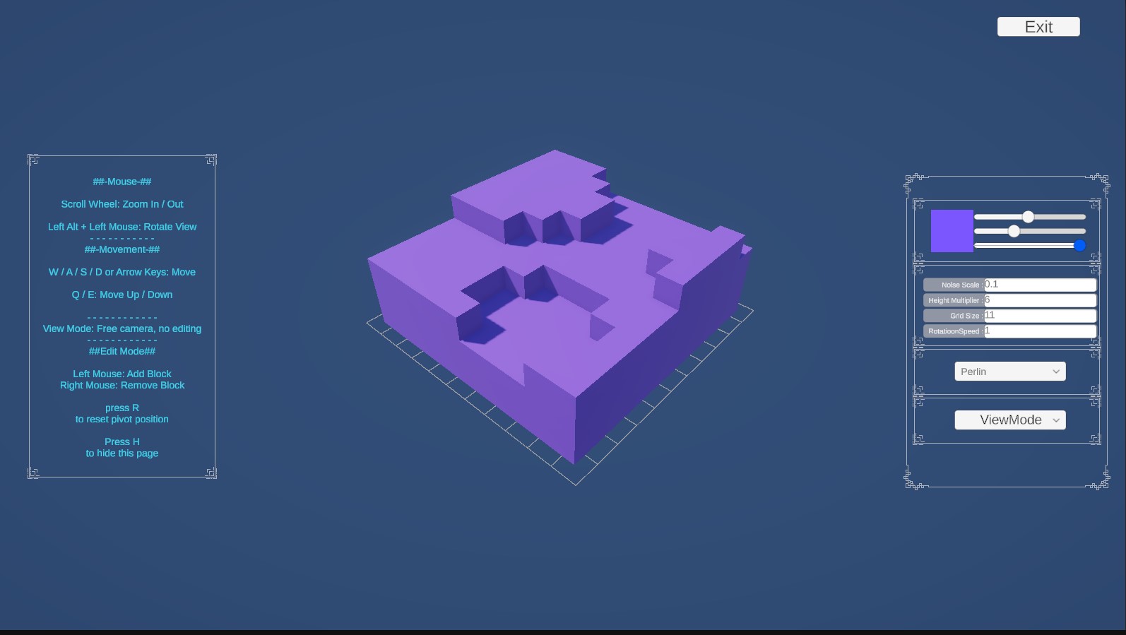 and it uses Perlin noise to create Terrian